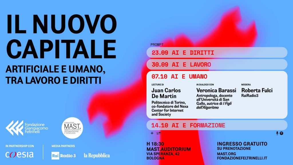 Il nuovo capitale. Artificiale e umano, tra lavoro e diritti è un percorso di incontri in quattro tappe, curato da Stefano Quintarelli, ideato e promosso da Fondazione Giangiacomo Feltrinelli e da Fondazione MAST, in partnership con Coesia per riflettere sul presente e sul futuro del lavoro. La domanda affrontata dai relatori è se la tecnologia – tra intelligenza artificiale, disuguaglianze crescenti e sistemi formativi in affanno – può essere davvero a servizio dei diritti, di dinamiche di inclusione e di un mercato del lavoro più giusto.