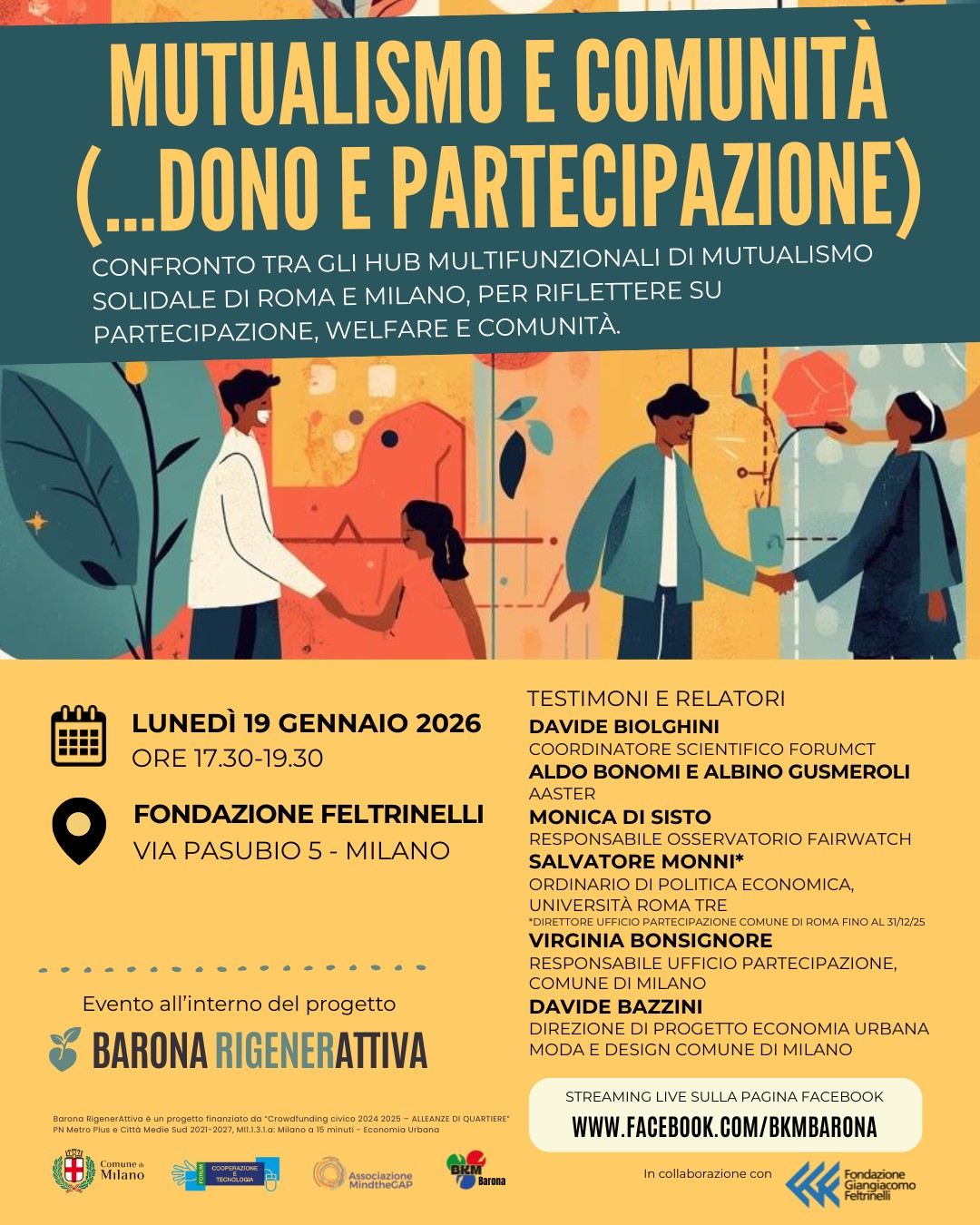 Attraverso testimonianze e dialogo tra ricerca, pratiche sociali e politiche pubbliche, l’incontro mira a esplorare il ruolo del mutualismo nella costruzione di legami sociali e spazi di prossimità.