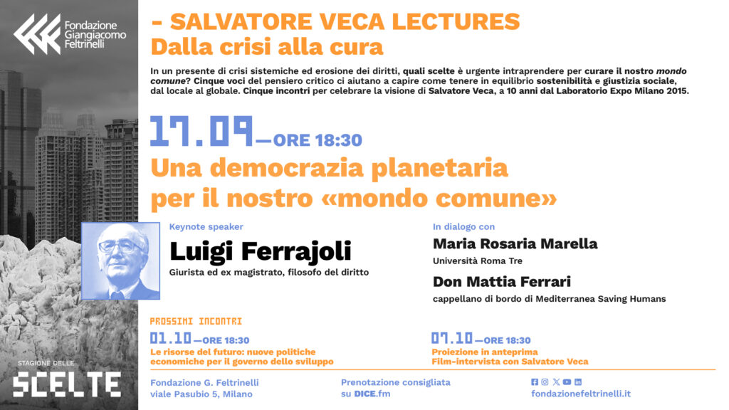 Luigi Ferrajoli giurista ed ex magistrato, filosofo del diritto, allievo di Norberto Bobbio. E’ professore emerito di Filosofia del diritto nell’Università Roma Tre. Tra i suoi libri: Progettare il futuro. Per un costituzionalismo globale (Feltrinelli 2025), Per una Costituzione della Terra. L’umanità al bivio (Feltrinelli 2022).