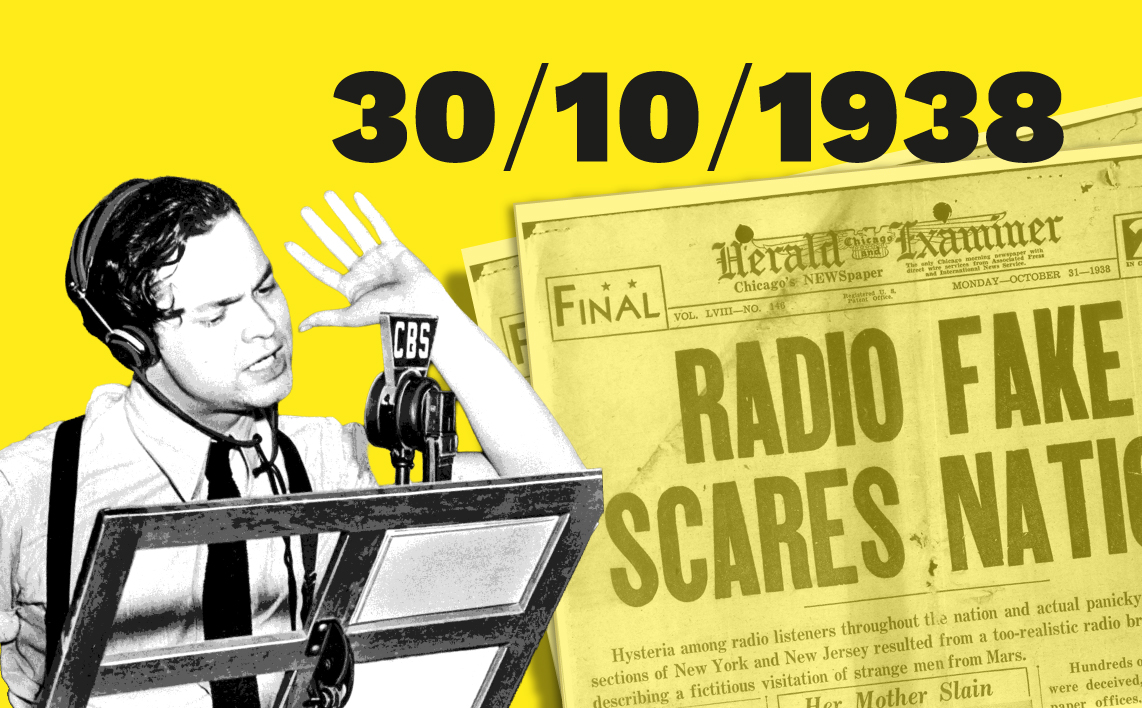 Al microfono c’era Orson Welles, con quella che la storia ricorderà come la prima grande bufala: la simulazione di un attacco da Marte, con finti giornalisti sul campo. Una burla che oggi si sarebbe diffusa alla velocità della rete digitale globale, allora inesistente.